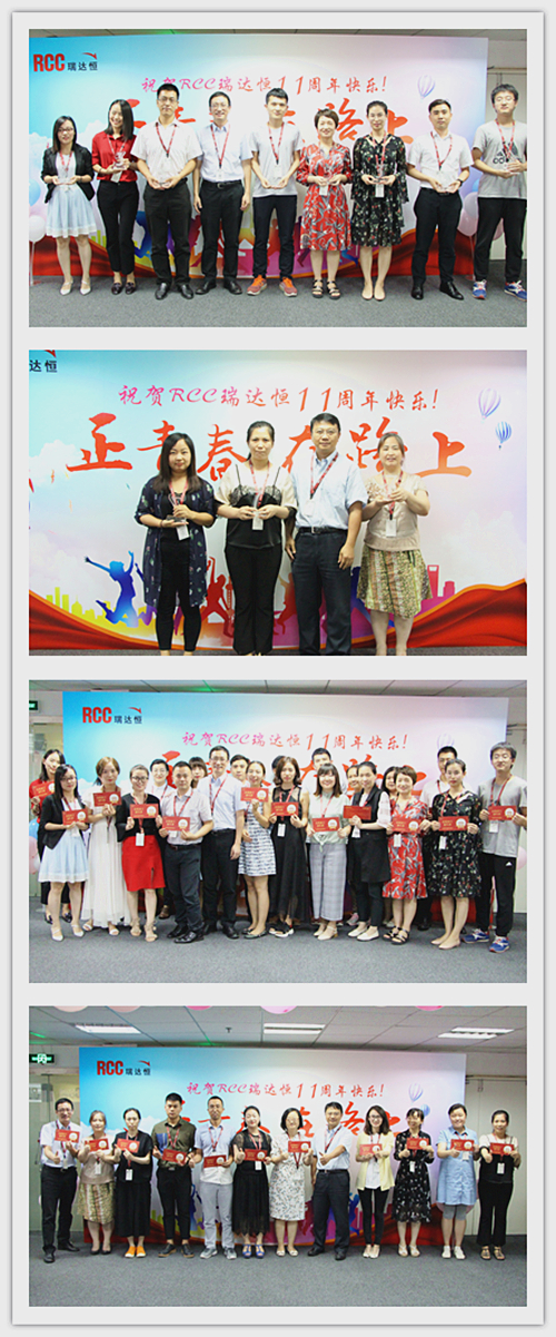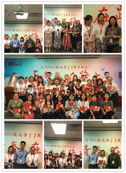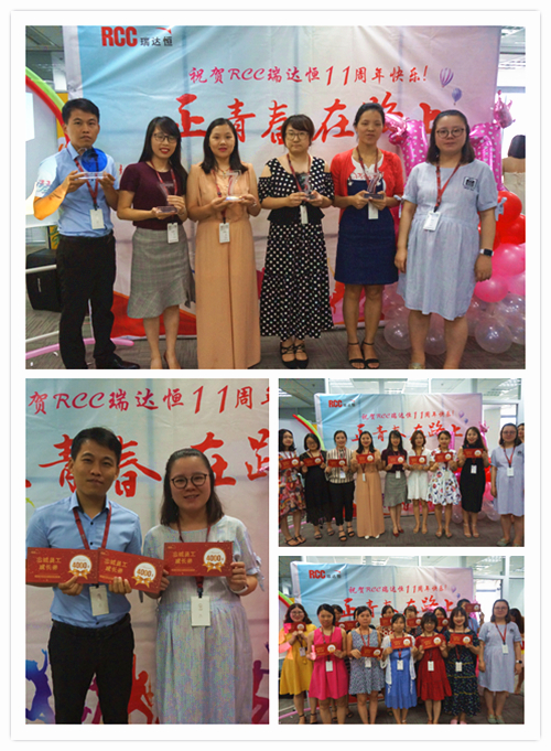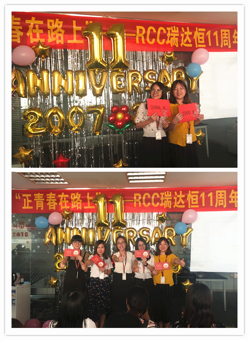 一段由RCC制作的十一周年慶視頻拉開了慶典活動的序幕。視頻中,敘寫了這一年來公司取得的驕人成績與開展的活動、PK戰(zhàn)中RCC員工們熱血的場面、客戶對RCC信息的評價片段、CEO在視頻中的致辭等內(nèi)容,震撼著每一名RCC人。RCC在2017——2018年所取得的諸多創(chuàng)新和進步、輝煌的成就和永不止步的發(fā)展態(tài)度,讓在場的每一名員工都倍感光榮和自豪。一個個輕松活潑的環(huán)節(jié)讓整個活動現(xiàn)場其樂融融,充分展現(xiàn)了RCC大家庭的團結(jié)與溫暖,把氣氛推向了高潮。公司領(lǐng)導(dǎo)還為眾多在RCC工作三年或以上的員工頒發(fā)了“忠誠員工特殊獎”,本次的頒獎把原先贈予金器的形式改為發(fā)放面額1000元到4000元的“成長券”形式,專門用于購買圖書、線上課程、健身卡,幫助老員工提升職場專業(yè)技能和能力、鼓勵他們積極鍛煉,保持健康的體魄。新的獎品形式不僅代表著公司感謝忠誠員工與公司共成長的情誼,還表明公司對員工全面發(fā)展的高度重視,公司也將一如既往地為更多有能力、有思想的員工提供更為廣闊的發(fā)展空間。最后,在團結(jié)與溫暖氣氛中,在全體RCC員工對公司的祝福里,公司十一周年慶典活動落下帷幕。